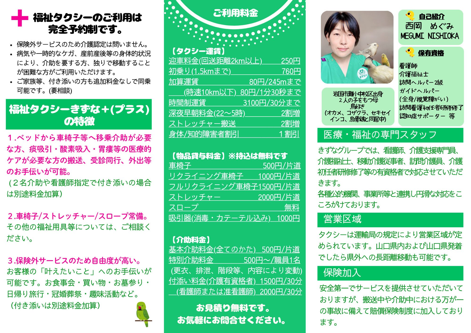 福祉タクシーきずな(平生営業所)とグループで活動しており、